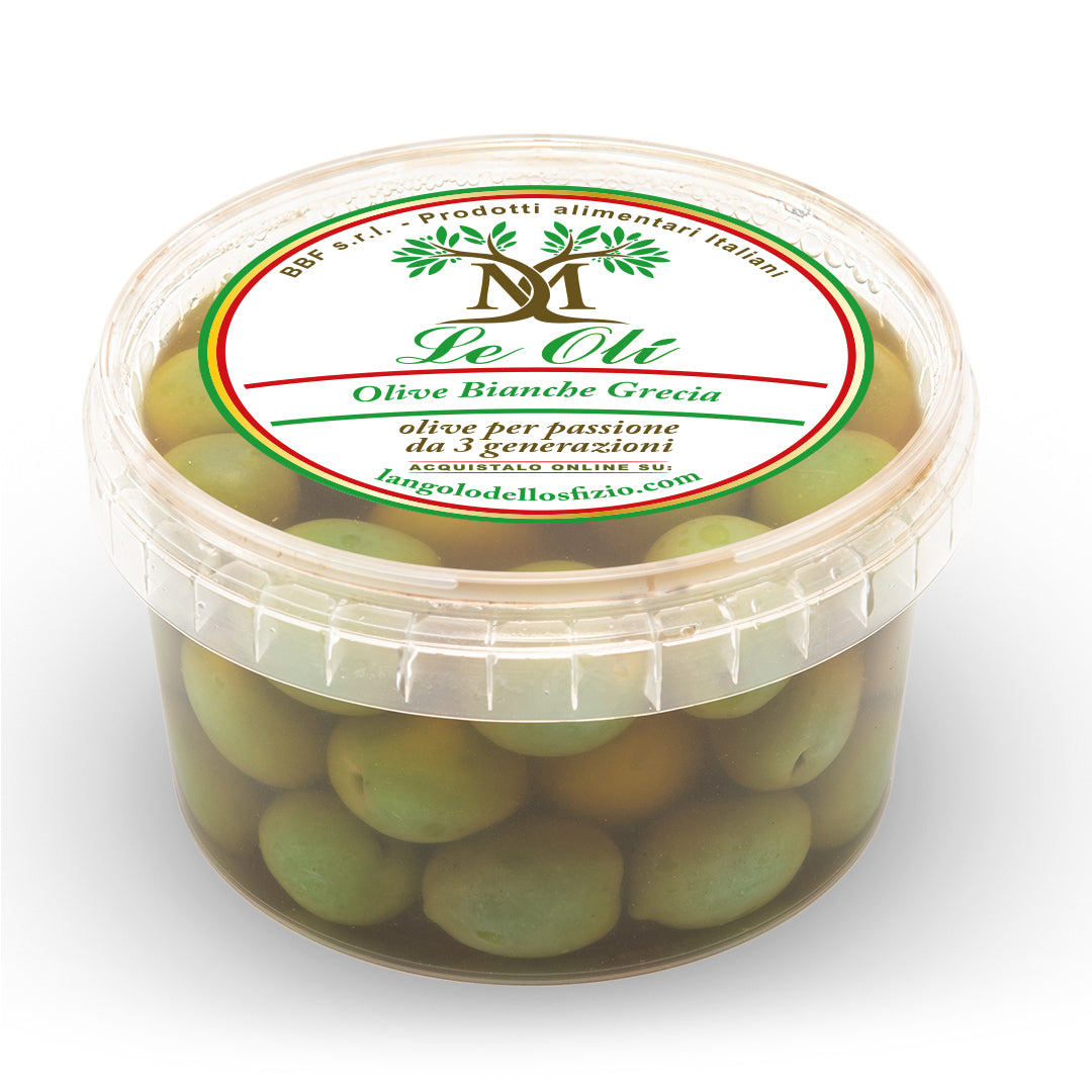 Olive greche verdi dal gusto pieno e polposa consistenza, lavorate tradizionalmente. Ideali per chi cerca sapori autentici mediterranei.